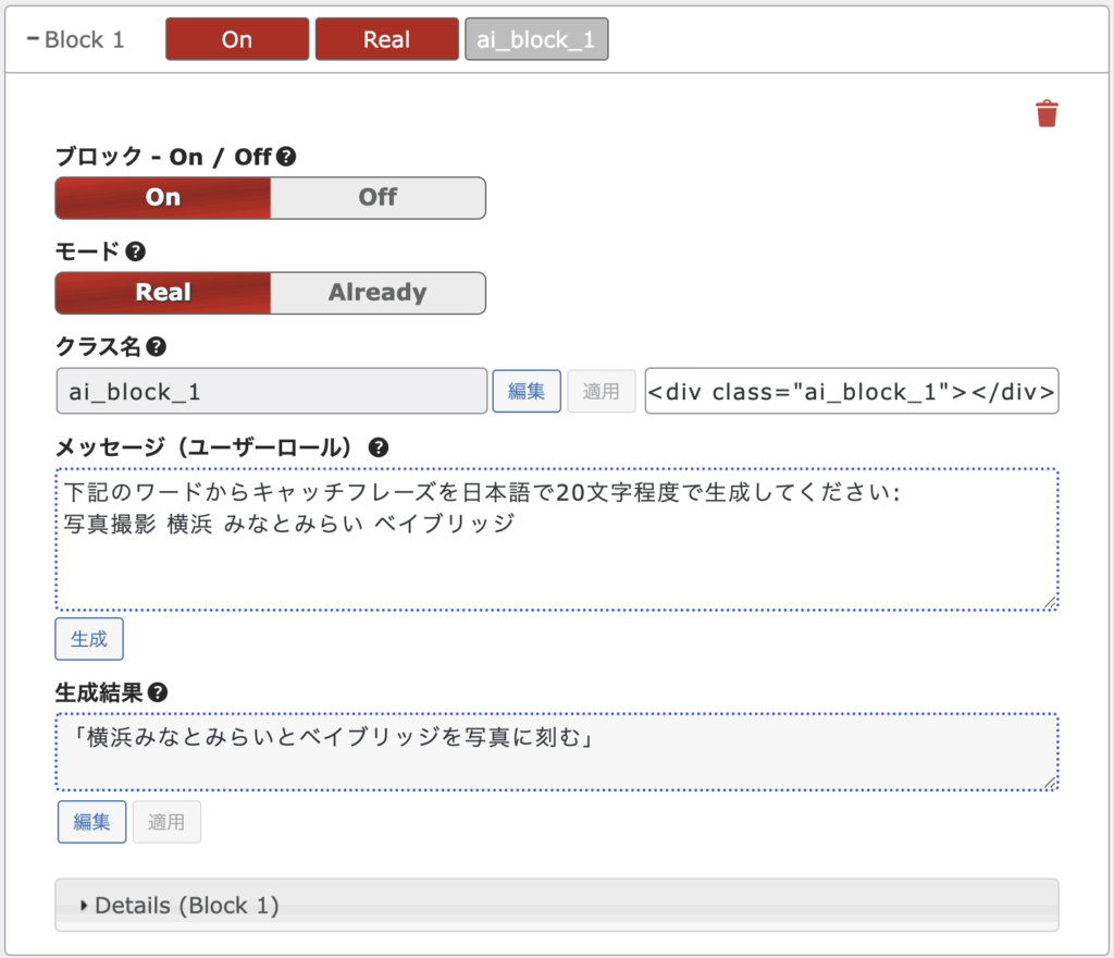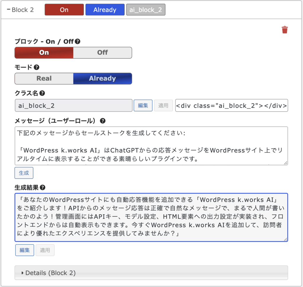Already としたこれらのブロックは、フロントエンドでのページ表示時にはChatGPTとは通信をしません。